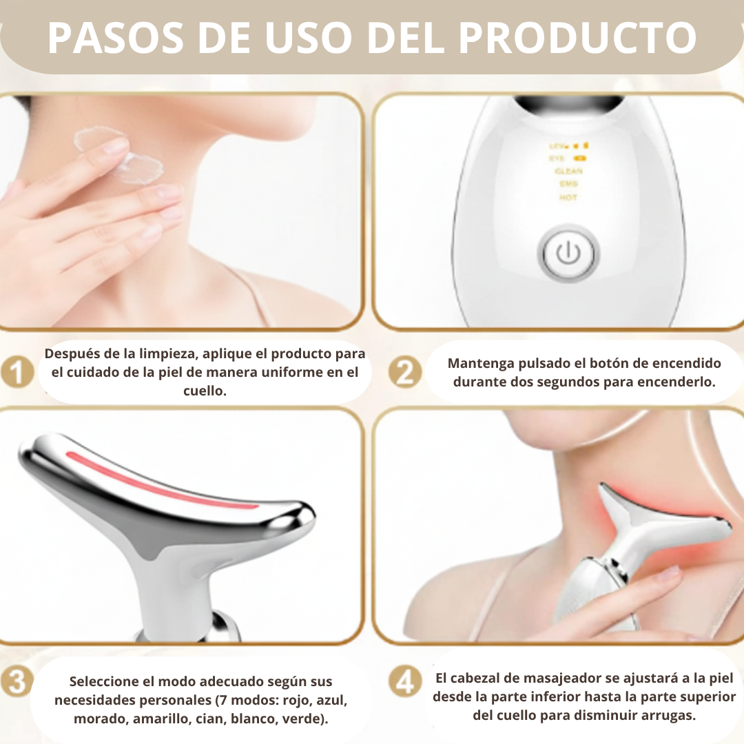 ✔ Terapia de luz LED de 7 colores: cada color tiene un beneficio único (acné, manchas, firmeza, hidratación, elasticidad).