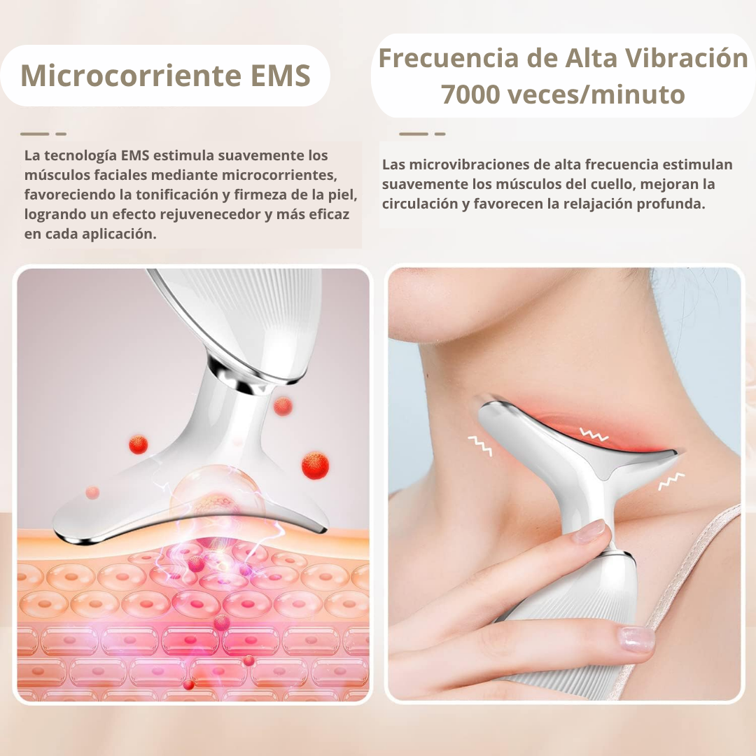 El Masajeador Facial Rejuvenecedor 7 en 1 combina terapia de luz LED, vibración sónica, calor y tecnología EMS para limpiar, revitalizar y rejuvenecer tu piel en profundidad.